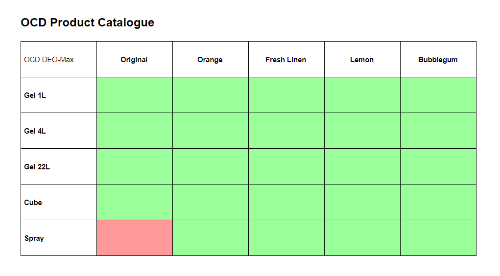 The company offers 1 product - an odour neutraliser, which is available in 3 types: