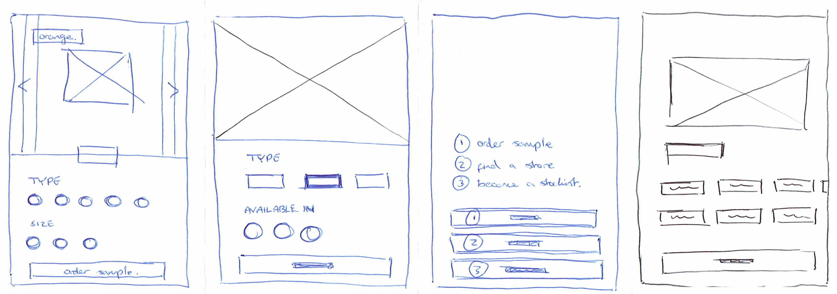 Wireframed ideas were turned into simple prototypes. We explored different ways of interacting with the product catalogue from a single screen, including the best ways to present all of the different options in an easily digestible way, while maintaining affordances for how they were to interact with it.